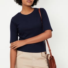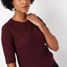 Revamp your wardrobe with this T-shirt featuring a sleek ribbed finish. Designed with a classic round neckline and short sleeves, it offers a timeless yet stylish look that effortlessly elevates your everyday outfits.