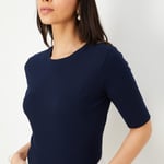 Expand your wardrobe with versatile pieces such as this ribbed top, designed with a classic round neck and flattering half sleeves.