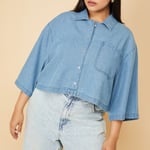 Women Solid Boxy Fit Crop Denim Shirt