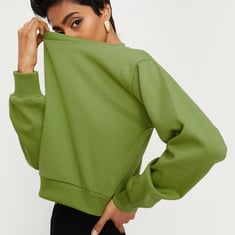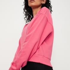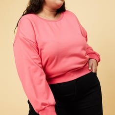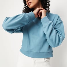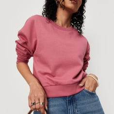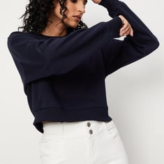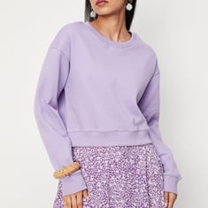 Upgrade your wardrobe for the season in this sweatshirt. it is rendered in a solid tone with a round neckline, drop shoulders, long sleeves, and ribbed trim. Pair this sweatshirt with trousers and ballerinas to up your style up a notch.