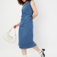Women Solid Denim Bodycon Dress