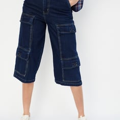 Women Solid Denim Capris with Cargo Pockets