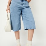 Add a trendy twist to your wardrobe with these solid denim jorts, perfect for a chic, casual look. Featuring a knee-length cut, button closure, and belt loops, they combine style and functionality effortlessly.