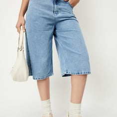 Women Solid Denim Jorts