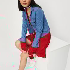 A year-round staple, this denim trucker jacket is a must-have in every wardrobe. It features a spread collar, long sleeves with buttoned cuffs, buttoned-flap pockets at the chest, waist pockets, and button tabs at the back hem. Layer it over a dress and team it with sneakers for a day out with friends.