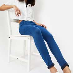 Step into comfort and style with these solid jeggings. Featuring an elasticated waist for a snug fit and four practical pockets, they offer the perfect blend of convenience and style for everyday wear. Model Size :