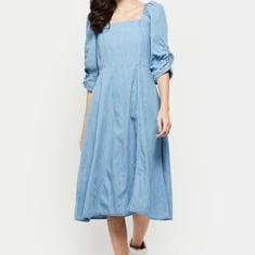 Women Solid Square Neck A-Line Dress