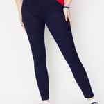 Rendered in a solid tone, this pair of jeggings scores high on comfort and style. It features an elasticated waist, side pockets, back patch pockets, and an ankle-length profile. Team up this pair with a tee and sneakers to ace the look.