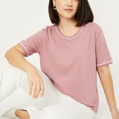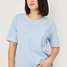 This solid t-shirt features a classic round neck and half sleeves, offering a stylish twist on a casual staple. Perfect for effortless everyday wear with a touch of texture.