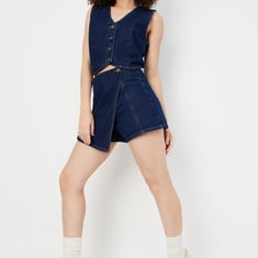 Women Solid Wrap Denim Skorts