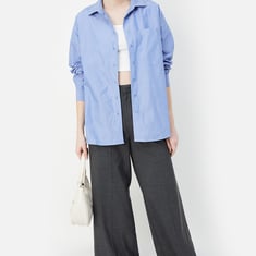 Step up your style game with this striped oversized shirt, a must-have for the ultimate laid-back, trendy look. Featuring a button placket, spread collar, and button cuffs, this shirt offers the perfect mix of classic and cool. Model Size :
