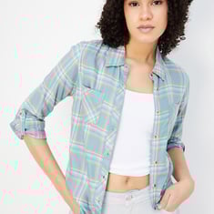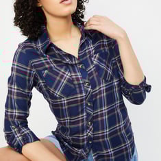 Boost your casual style with this checked shirt, designed with a spread collar, full sleeves, and two patch pockets. Its versatile pattern and classic details make it perfect for both relaxed and polished looks.