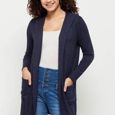 Women Textured Knit Hooded Shrug