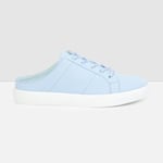 Rendered in a solid tone, this pair of mules features almond toe design, lace-up panel, and patterned outsole.