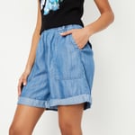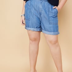 These solid denim shorts are a timeless wardrobe essential. With a button closure, belt loops, and four pockets, they offer both style and functionality for all your summer adventures. Model Size :