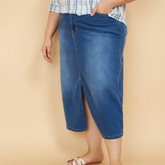 Women Washed Denim Skirt