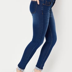 Your denim collection will be refreshed by these jeans. It has a skinny fit, a high rise, button and zip closure, and a five-pocket layout. The wash gives off a worn-in effect. Team these jeans with a printed tee and sneakers.