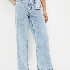 Make a statement with timeless denim flair in these washed wide-leg jeans. Featuring a high-rise fit, belt loops, button closure, and classic 5-pocket styling for everyday ease. Model Size :