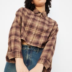 Elevate your fashion game with this checked shirt. With a cropped silhouette, spread collar, long sleeves, and buttoned cuffs, it adds a stylish touch to any outfit.