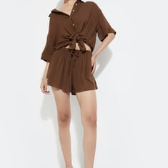 Stay cool and stylish in these flared shorts, featuring a drawstring closure and handy pockets for everyday ease. Perfect for relaxed, warm-weather vibes.