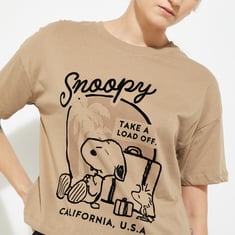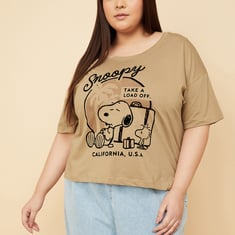 Add a fun, playful touch to your casual wardrobe with this Snoopy print boxy fit T-shirt, featuring a round neck and half sleeves for relaxed comfort. Model Size :