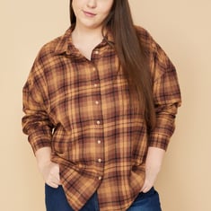 Boost your casual style with this checked shirt, featuring a spread collar, drop shoulder, full sleeves, and patch pockets.