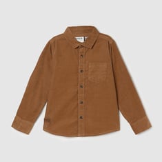 This corduroy shirt will jazz up your kid's wardrobe, it comes with a spread collar, full sleeves, a button placket, and a patch pocket. To make his day comfortable and stylish team this shirt up with a pair of jeans and lace-up shoes.