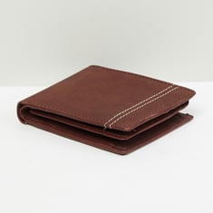 This wallet features a solid finish, running stitch detail, and multiple slots.