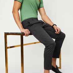 Make your casual wear look sophisticated with this pair of chinos. It is designed with pockets, waist loops, a checked surface, cropped-length construction, and button closure with a zip fly. Team it with a pair of slip-on shoes and a shirt to complete the look.