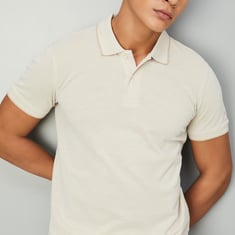 Upgrade your casual wardrobe with this polo T-shirt that features a classic polo collar, half sleeves, and vented hem to lend you comfort all day long. The solid surface adds a stylish flair to your overall look.