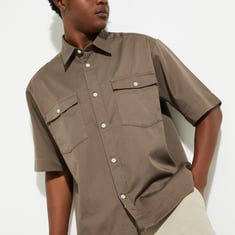 Amp up your street style with this oversized shirt, bringing that laid-back, roomy vibe you crave. Featuring a spread collar and half sleeves, it's all about those double flap chest pockets and a front button placket, finished off with a straight hem for that effortlessly cool look.