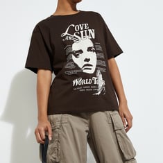 URB_N Women Love and Sun Printed Relaxed Fit T-shirt