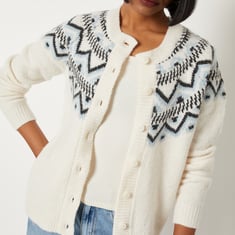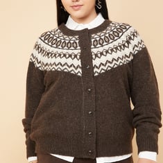 Layer up in style with this knit cardigan, featuring a round neck, button placket, and full sleeves for a cozy and versatile look. Model Size :