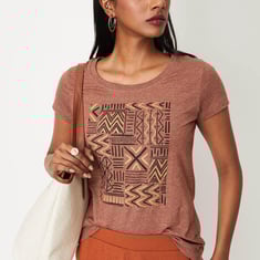 Amp up your casual wardrobe with this T-shirt with a graphic print on the front. It is styled with a round neckline and short sleeves. Pair this tee with trousers and ballerinas for an elevated look.