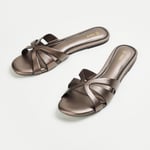 Time to style up your comfort with this pair of flats sandals featuring solid straps, a square toe, and a comfortable footbed.
