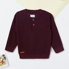 Stay cozy in this knit sweater featuring a classic crew neck, button placket, and full sleeves. A versatile layer perfect for cooler days and casual outings.