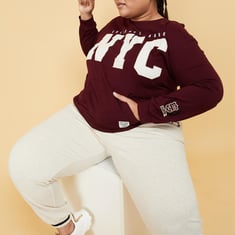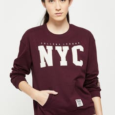 Gear up for the season in this sweatshirt featuring a round neck, drop shoulders, long sleeves, a kangaroo pocket, applique detailing on the front, and ribbed trim. Complete the sporty look with a pair of joggers and your basic sneakers.