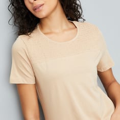 Women Smocked Yoke T-shirt