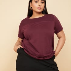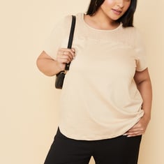 Elevate your fashion effortlessly with this T-shirt. Featuring a solid surface, smocked yoke, round neck, and half sleeves, it offers a stylish upgrade to your wardrobe. Model Size :