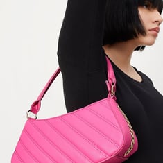 Instantly elevates your outfit with this shoulder bag. It is designed with a textured surface, rolled strap, internal pockets, chain details, and a spacious compartment to store your essentials with ease.