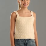 Keep your daughter stylish and comfortable with this chic sleeveless crop top enhanced by a cable knit pattern. The lightweight fabric and snug fit make it perfect for all-day wear. It is detailed with a square neck and shoulder straps.