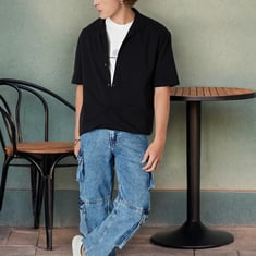 Keep it sleek with this solid slim fit shirt, featuring a stylish resort collar, button placket, and tailored half sleeves. Designed for a sharp yet relaxed silhouette.