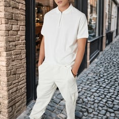Step up your smart-casual game with this knitted polo T-shirt, featuring a sleek polo collar, half sleeves, and a modern zip closure.