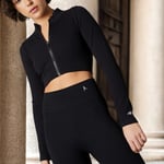 Layer up your style with this ribbed jacket, boasting a cool mock collar, full sleeves, and a zip-front closure. Its cropped silhouette is perfect for rocking a laid-back, effortlessly cool vibe.