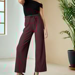 Embrace laid-back style and ultimate comfort with these ribbed wide-leg trousers. Designed with an elasticated waist and a convenient drawstring, they offer a relaxed fit that's perfect for both lounging and running errands. The ribbed texture adds a touch of sophistication while maintaining a casual feel.
