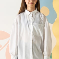 Ensure comfort and style in your kid's wardrobe with this oversized solid surface shirt. It features full sleeves, a spread collar, a button placket, and a patch pocket for added practicality. The curved hem adds a relaxed yet trendy vibe, making it a versatile choice for any occasion.