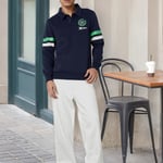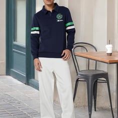 Whether you're out for a casual meet-up or just vibing with friends, this sweatshirt keeps it fresh and easy. The full sleeves with stripes, polo collar, and ribbed trim give it that retro, athletic edge, while the print on the chest adds to the style.