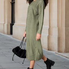 Women Cable Knit Belted Midi Dress