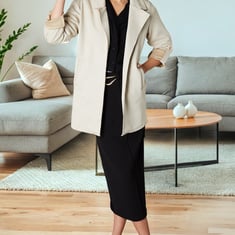 Stay stylish and cosy with this jacket. Featuring a notched collar and an open front design, it effortlessly drapes over any outfit, adding a sophisticated yet laid-back vibe. The waist pockets offer practicality, while the rolled cuffs with tabs add a modern, edgy twist.