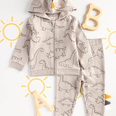 Keep your little one cosy and playful with this dinosaur-themed sleepwear set. Designed for infants, it features a captivating dinosaur print on a hooded sweatshirt with long sleeves for extra warmth. Perfect for everyday adventures, this jogger set ensures your baby boy looks and feels his best.